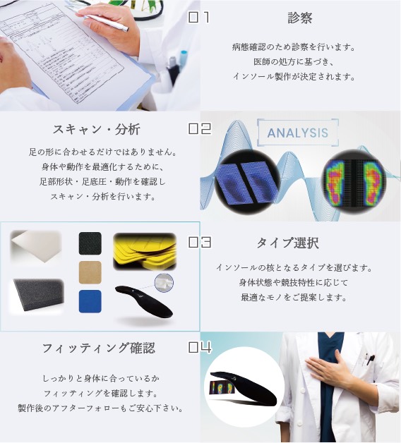 ※医師の処方の元インソール(足底板)を製作する場合は健康保険の適応となります。詳しくは担当にお問い合わせください。